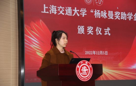 杨咏曼校董感谢学院的精心安排,对本届获奖获助学生表示祝贺。她对所有获奖学生现阶段的科研工作与成果表示肯定,她也期待同学们能够学有所成,日后成长为可以报效家国的栋梁之才。杨校董盛赞交大近年来对人才培养工作做出的努力与成绩,在听到交大办学实力及国际排名的进一步提升的消息时,倍感振奋,与有荣焉。她也希望获奖同学在今后的学习工作中,能够抓住机遇,在成就自我的同时,做一个有骨气的中国人,主动回馈祖国,报效国家,为社会,为母校做出应有的贡献。杨校董祝同学们学业进步,身体健康,新春快乐。