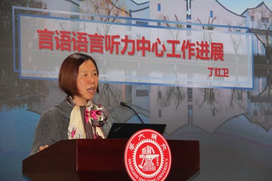 丁红卫教授首先深入浅出地说明了“言语语言听力中心”的工作特点,继而从全程育人、创新科研、服务社会三个方面介绍语言认知实验室今年开展的工作,并表示要向资助实验室的杨校董这位优秀榜样学习,弘扬奉献精神,为社会做出应有贡献。