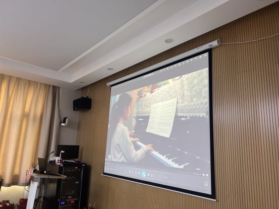 随后,10岁的金灵犀小朋友用小提琴现场演奏了一段“第二小提琴协奏曲”,赢得了满堂喝彩,胡晓凌小朋友同样展示了她在家里练习钢琴的视频片段。