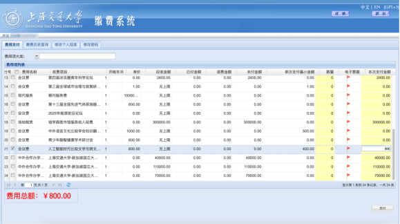 - 进入支付页面后,教师统一输入 800 元、学生统一输入400元进行支付;