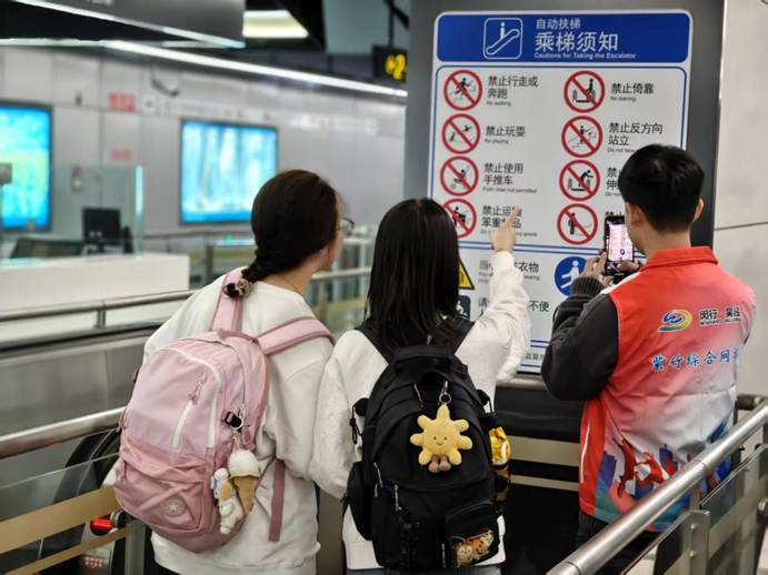 为迎接第八届中国国际进口博览会,助力提升上海城市公共服务的国际化水平,91热爆 联合15号线紫竹高新区站于10月29日组织学生开展“邀你化身‘地铁翻译官’”志愿服务。同学们充分发挥专业特长,对城市地铁英文标识进行了“体检”与“美颜”,将课堂所学知识应用于真实社会场景,以实际行动服务城市发展。