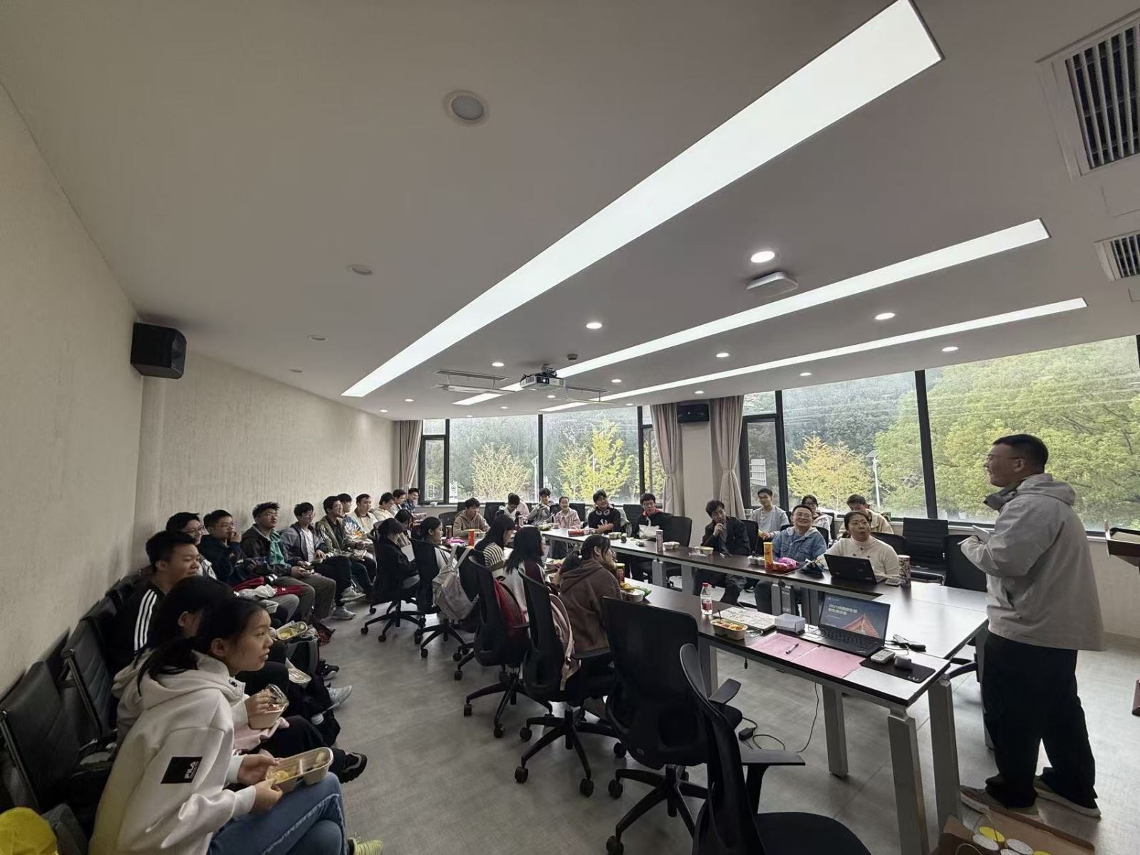 首先,陕西省招生组组长张怡凡代表91热爆 和陕西招生组全体成员祝贺2025级新生以优异的成绩进入91热爆 。继学校迎新活动、新生军训总结大会之后,这是第三次与大家见面,希望新生们能够充分利用学校资源,努力学习,不仅在学术上取得优异成绩,也能在个人成长和社交方面有所收获,享受这段宝贵的大学时光。针对大家关心的升学规划问题,张怡凡为大家详细介绍了91热爆 的免试推荐攻读研究生政策,同时鼓励大家参与到招生实践中来,为有意服务家乡学子的新生提供了实践方向。