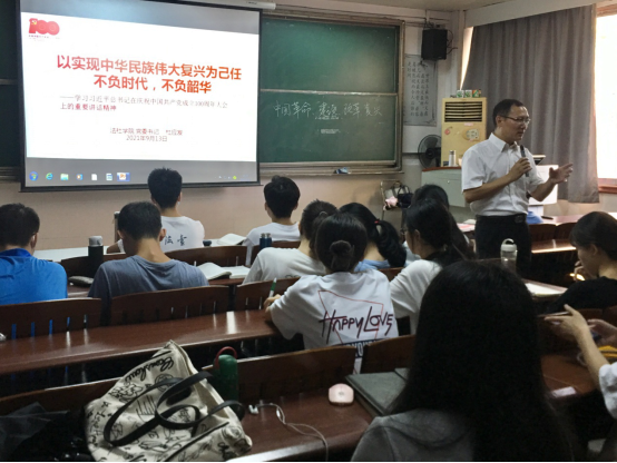 党委书记杜应发为2020法学1班、2020法学2班、2020法学(知识产权)1班90多位同学上了一堂题为“以实现中华民族伟大复兴为己任不负时代,不负韶华”的思政第一课,与同学们共同学习了习近平总书记在庆祝中国共产党成立100周年大会上的重要讲话精神。