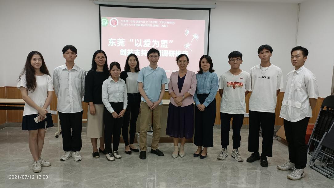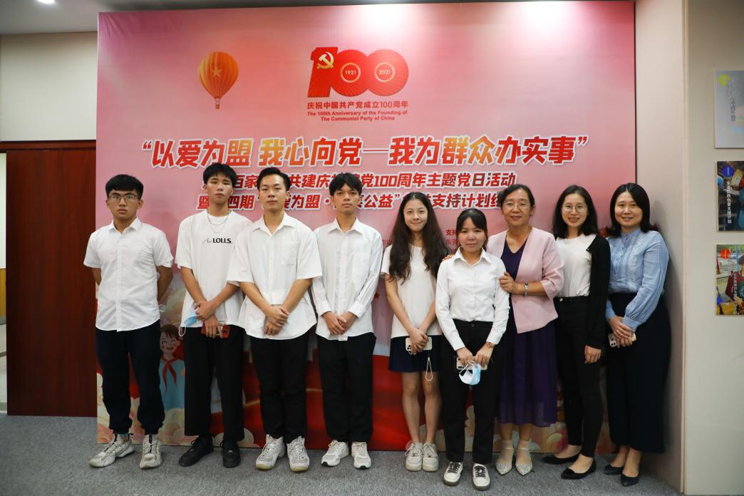 副院长朱晓红、党曦博士、张子庄老师和6名大创项目学生团队在东莞市莞香花青少年服务中心参加了由东莞市民政局、东莞南城街道“两新”组织党委指导,东莞市社会工作协会、东莞市微笑爱心慈善基金会及盟大集团联合主办的“以爱为盟 我心向党——我为群众办实事”主题党日活动暨第四期“以爱为盟·微笑公益”创益支持计划终评活动。