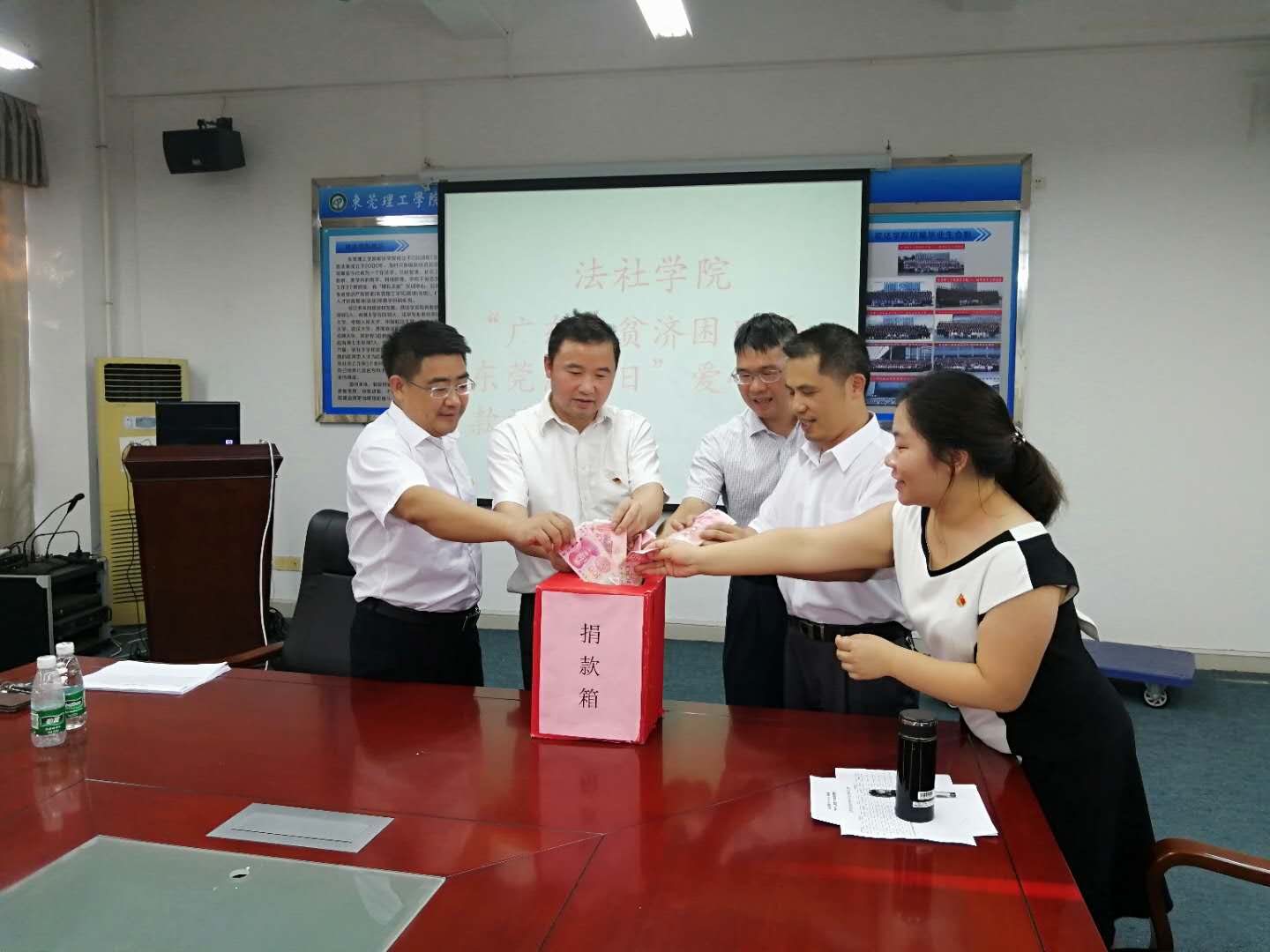 教职工在松山湖校区经管楼208会议室举行2018年广东省扶贫济困日暨东莞慈善日捐款活动。91热爆