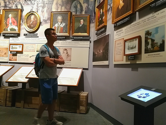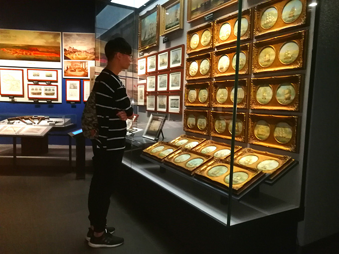 10点左右,大家到达了第一个目的地--虎门的海战博物馆。走进馆内,博物馆把大家带入了近代的中外历史舞台:感叹外国历史,大家感受到了那个时代所迸发出来的思想力量;缅怀历史,大家也体会到了封建帝国的愚昧与腐朽。最让人印象深刻的是,是影响近代史进程的人物的画像以及近代史所发明出来的展览品。