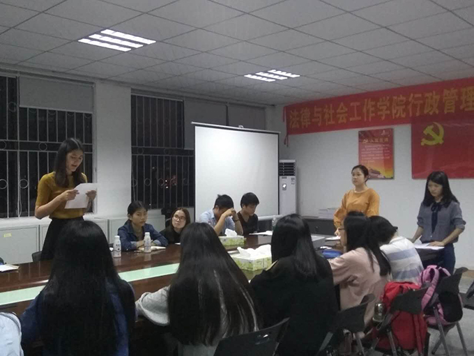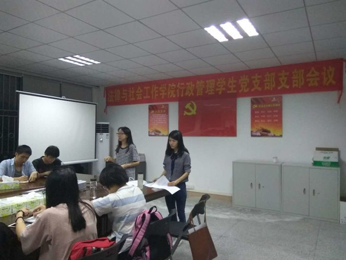 行政管理学生党支部大会顺利召开。本次会议的主要内容是讨论接受预备党员的相关事宜。参与会议人员有行政管理学生党支部书记邱可荣老师、5名正式党员、11名预备党员以及5名发展对象。