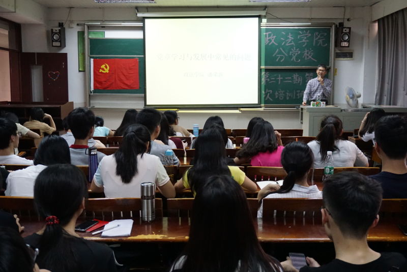 本次培训课主题是“党章学习与发展中常见的问题”。在课上,潘书记首先以时间为线索给同学们介绍了中央党的核心概念,接着给同学们宣读了党章的基本内容,最后介绍了发展党员的流程以及发展中常见的问题。其中,潘书记重点介绍了党的性质、党的纪律、党员的义务权利以及党史的小常识。本次培训课,潘书记结合身边的例子,以幽默、诙谐的形式给同学们介绍党的相关知识以及党员以身作则、实事求是的重要性,同学们受益匪浅。
