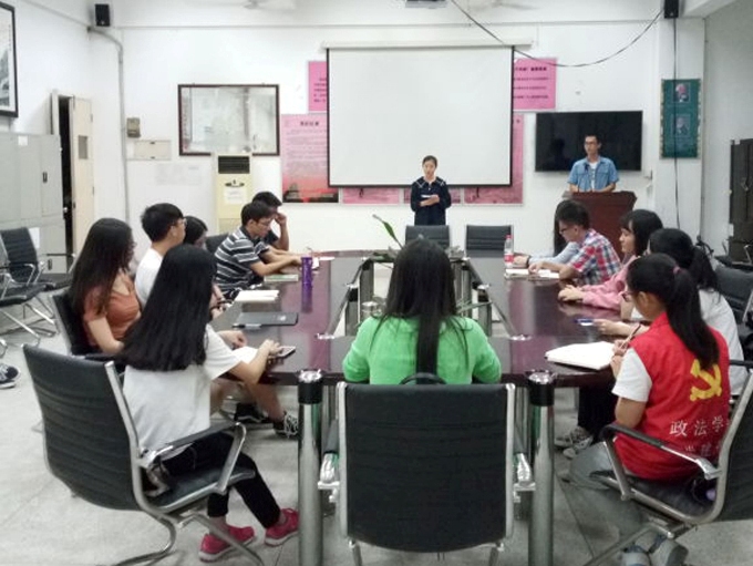 法学学生党支部在松山湖校区经管楼211召开。本次大会主要讨论了接收预备党员等重要内容,法学党支部书记邱可荣老师、10名正式党员以及三名预备党员参加了本次会议。