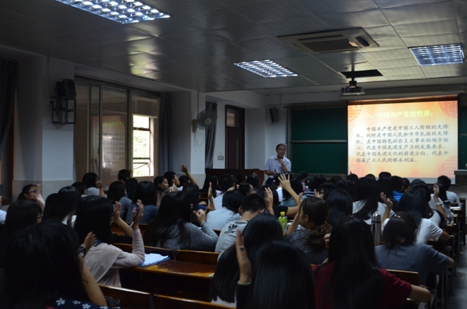 分党校莞城校区第二十一期入党积极分子第三次培训课于课室3407举行。本次培训课邀请到思政部李洪君教授授课。应到入党积极分子84人,实到76人,另有53名班委参加。