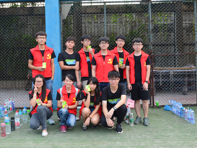 师弟师妹们领到饮料后露出灿烂的笑脸