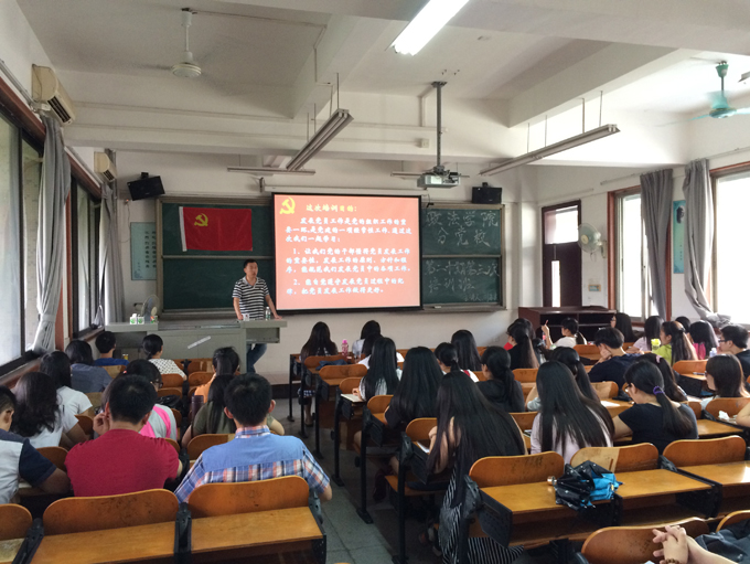 分党校第二十期第三次入党积极分子培训课于莞城校区1309教室举行。本次培训课邀请到刘海波老师授课,应到积极分子47人,实到42人。