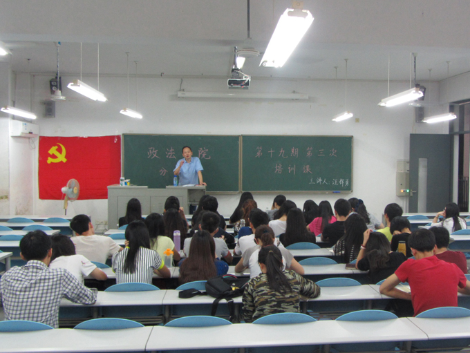 分党校第十九期第三次入党积极分子培训课于松山湖校区教学楼6D-202举行。本次培训课由汪辉勇老师主讲,应到入党积极分子人数为39人,实到人数为34人。