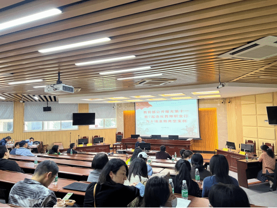 党委书记杜应发带领大家学习了《教育部公开曝光第十一批7起违反教师职业行为十项准则的典型案例》和《新时代高校教师职业行为十项准则》。通过以案说法的方式,引导全体教职工筑牢师德“防线”,切实增强遵守教师职业行为十项准则的自觉意识,自觉规范执教行为。