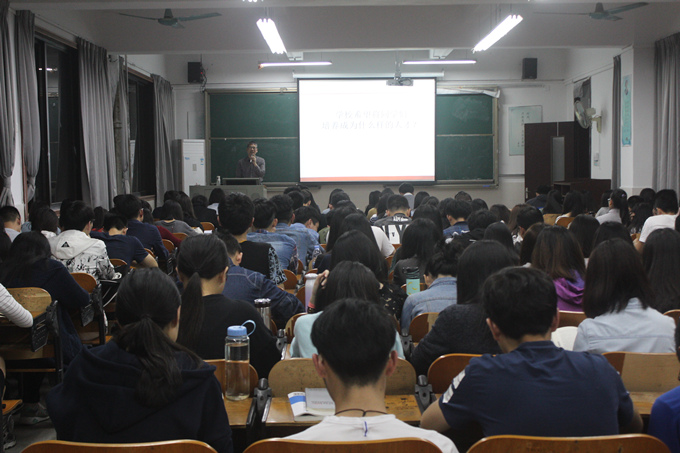 党总支书记潘荣新老师在莞城校区1311教室进行了一场“教育教学大讨论”的动员大会,辅导员老师、院级学生会、党建办、团总支及各班班长、学习委员、团支书等160余人参加了会议。