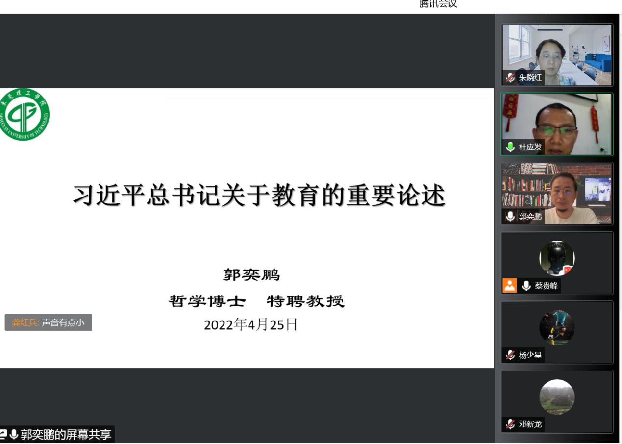 本次讲座旨在认真学习、深刻把握习近平总书记关于教育重要论述的理论框架、内在逻辑、核心意涵和实践要求,郭奕鹏首先解读总书记关于“要准确回答‘培养什么人、怎样培养人、为谁培养人’的根本问题,必须要从中国特色社会主义的基本性质和根本特征出发,教育是国之大计、党之大计。而后指出,课程思政是要求在课程教学中充分挖掘各类课程和教学方式中蕴含的思想政治教育资源,要把思想政治教育贯穿于教育教学全过程,实现全员全程全方位育人,统筹推进思政课程和课程思政建设,是深化思政课改革创新、推动各类课程与思政课程同向同行的必要前提。
