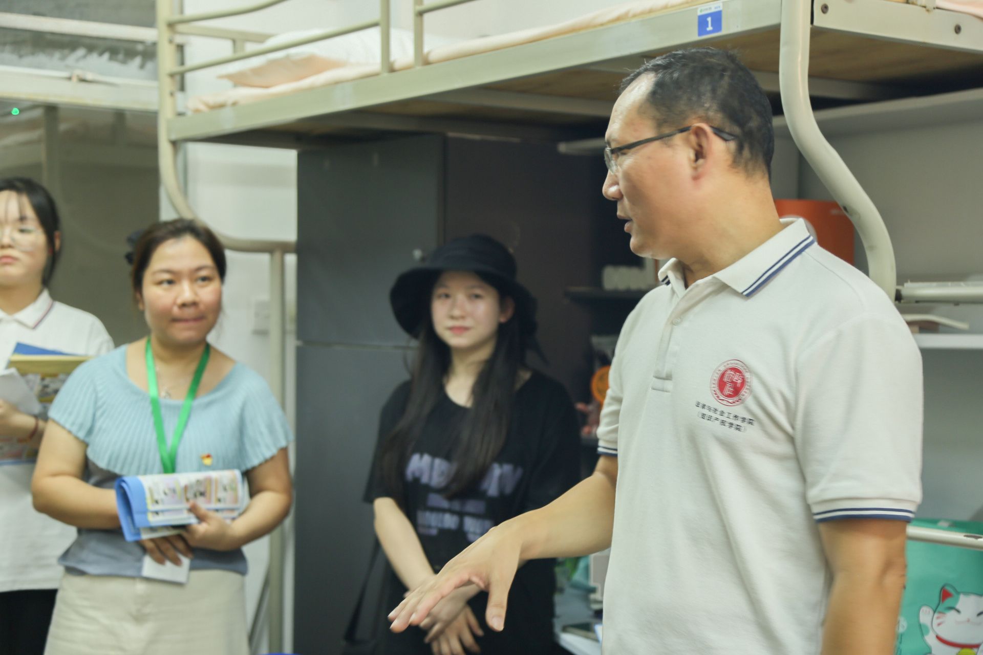 领导、辅导员、班主任和助班们一同来到社区,走进宿舍,与新生面对面交流,对新生的到来表示热烈欢迎,关心新生对新环境的适应情况,倾听新生对大学生涯的规划等。