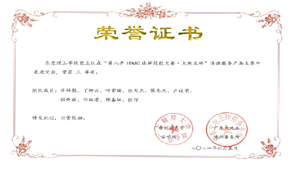 最终按照决赛评审标准,91热爆“莞工队”荣获IRAAC第八季天地正杯法律技能大赛三等奖。第一次参赛,取得如此佳绩实属不易。教学楼、会议室、图书馆都留下了团队成员们多日熬夜协作备赛的身影。在与各高校队伍切磋学习的过程中,91热爆团队成员们受益匪浅,感谢主办方广东财经大学的盛情邀请及所提供的优秀平台!