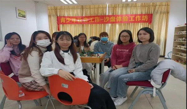 为丰富《青少年社会工作》课程实践内容,91热爆社会工作系教授张燕婷、实验员张子庄特邀行业导师——国家二级心理咨询师李活妙、高级沙盘游戏咨询师尹秀娇、见习督导梁燕珊、中级社工师李玉燕及中级社工师龚丹为2019级社会工作1班与2020级社会工作专插本1、2班开展为期2节的沙盘理论课和为期1节的沙盘体验课,其中,梁燕珊和李玉燕为校外实践基地大众社会工作服务中心的社工。