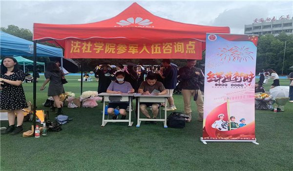 此次国防教育征兵系列宣传,采取拓展宣传方式,结合前期线上动员宣讲会,进行政策上的解读和再发动。同时,积极发动学校退伍军人力量,组织参与宣传活动,通过他们自身参军入伍的切身体会,鼓舞同学们参军入伍。
