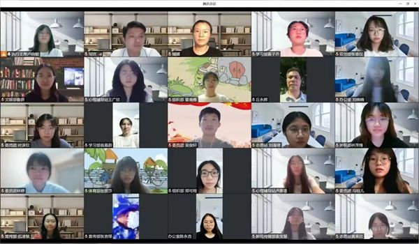 为了增进新任委员团和新任部长团之间的了解,加强学生干部与老师的沟通与交流,91热爆团委学生会于7月15日晚7:30在腾讯会议软件上召开了第二十三届团委、学生会第一次干部座谈会。本次会议由执行主席卢晓敏主持,党委副书记丘永辉、学工办主任钟丽华、辅导员邹欢和谢媚媚,以及团委学生会全体学生干部出席了本次会议。