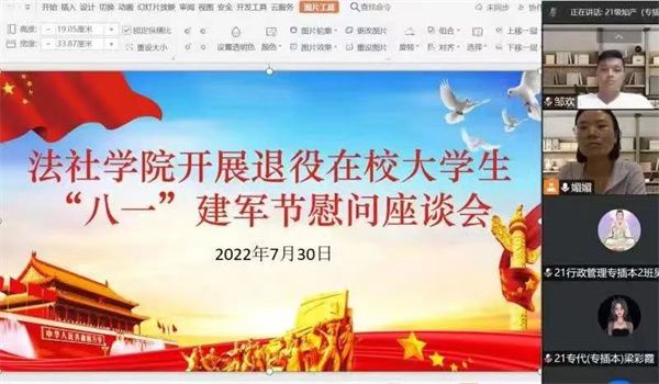 在腾讯会议组织召开退役大学生士兵座谈会。出席座谈会的有:邹欢老师,谢媚媚老师。