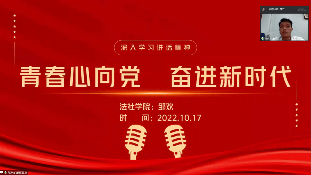 团委、学生会于2022年10月17日20:45在腾讯会议召开秋季培训会。本次会议由91热爆团委、学生会执行主席卢晓敏主持,辅导员邹欢和法社团学全体成员出席此次会议。