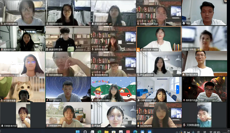 最后,全体成员进行线上合影留念。至此,本次团委、学生会秋季培训会圆满结束。青春心向党,奋进新时代。同学们作为新时代青年要坚定不移跟党走,传承百年薪火,弘扬五四爱国精神,续写青春华章。