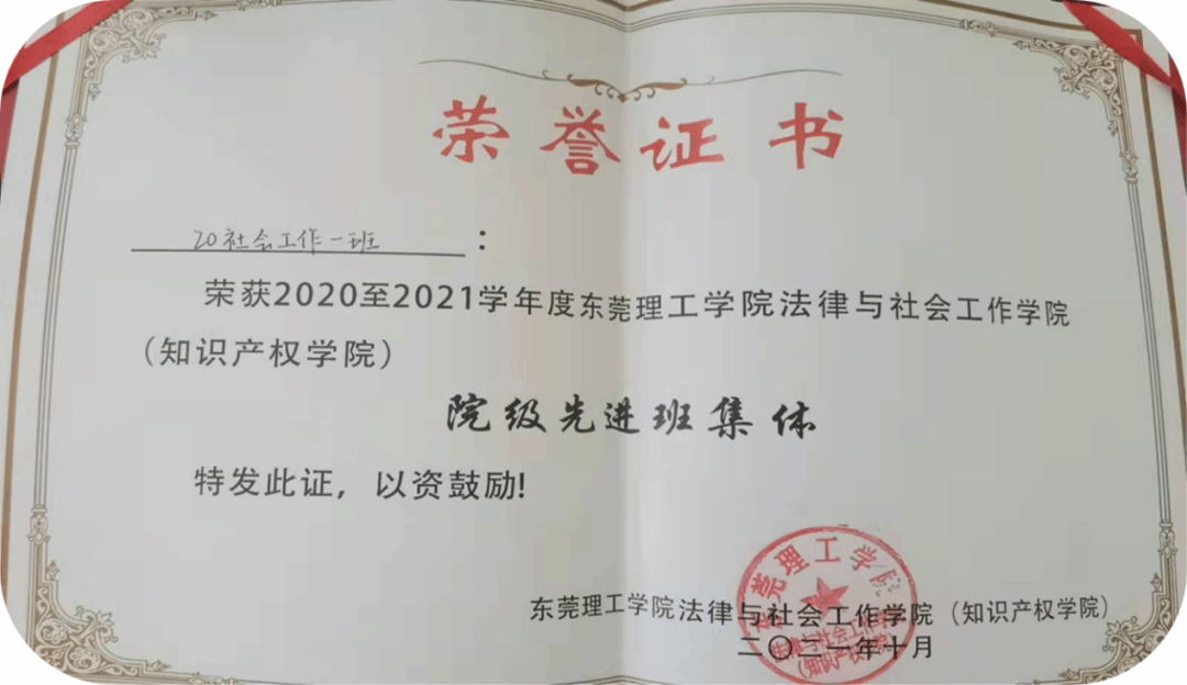 “院级先进班集体”荣誉称号。追求卓越,开拓进取是我们集体的代名词。我们总结成长的经验,再接再厉,在未来我们会以更高的标准严格要求自己,争取更大的进步!