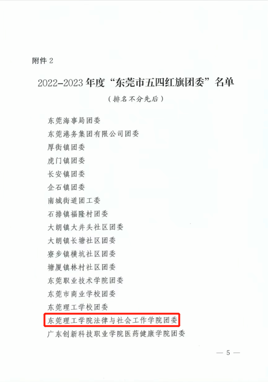 团委荣获2022-2023年度“东莞市五四红旗团委”称号。