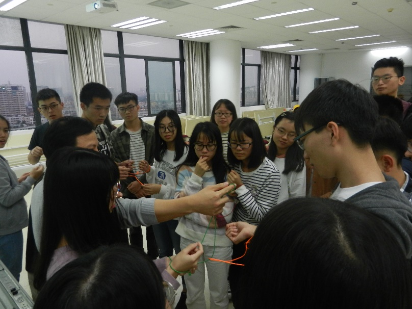 在最后的小组服务模拟环节,同学们一共参加了两个游戏 -- 解绳子和生涯卡。通过这些活动,同学们对小组工作中的活动有了更深刻的认识。