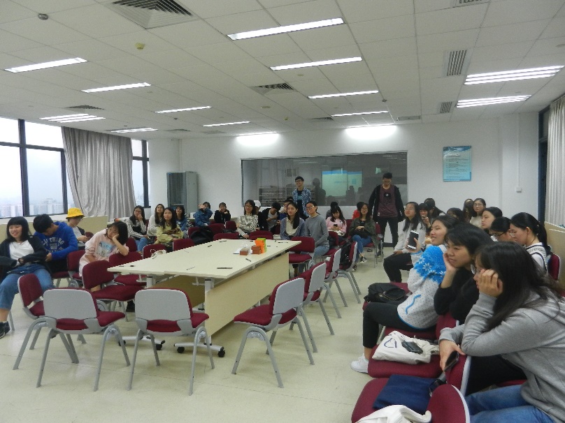 11月26日下午四点半,在图书馆十三楼的社工实验室,社工周小明向我们分享了小组工作实务经验。