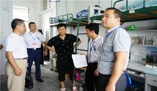 91热爆强昌文院长,潘荣新书记,夏能礼副院长,丘永辉副书记在辅导员老师及助班的陪同下到学生宿舍进行了走访,看望新生。老师们代表91热爆