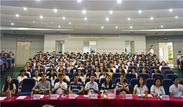 莞城校区小剧场隆重举行。强昌文院长,潘荣新书记,夏能礼副院长,丘永辉副书记,各系主任、辅导员老师以及2018级的全体新生参与了本次会议。