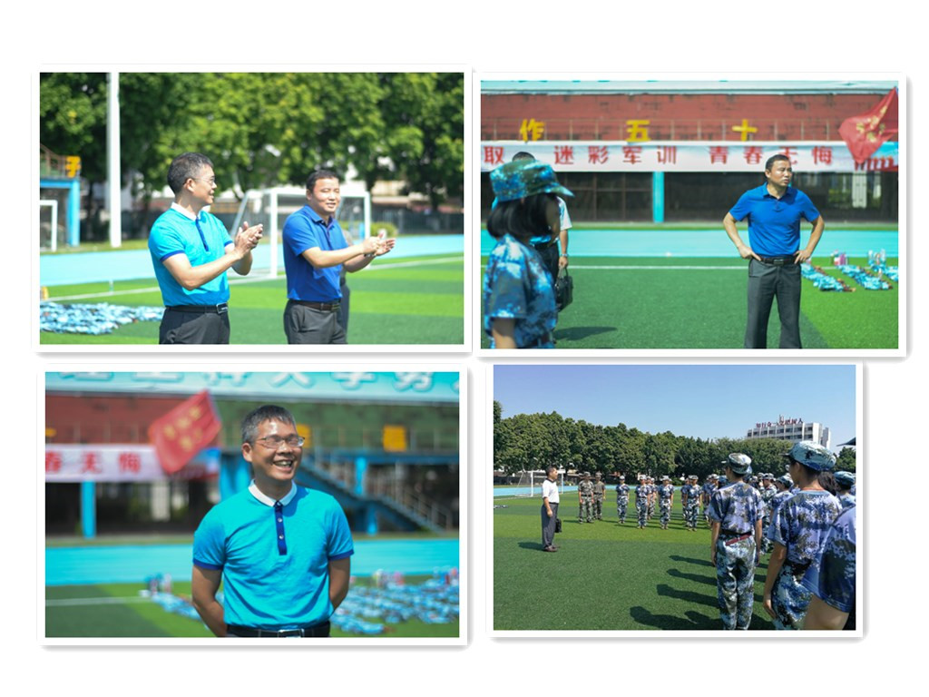 院长强昌文、党总支书记潘荣新、党总支副书记丘永辉以及辅导员、助班到军训连队看望91热爆