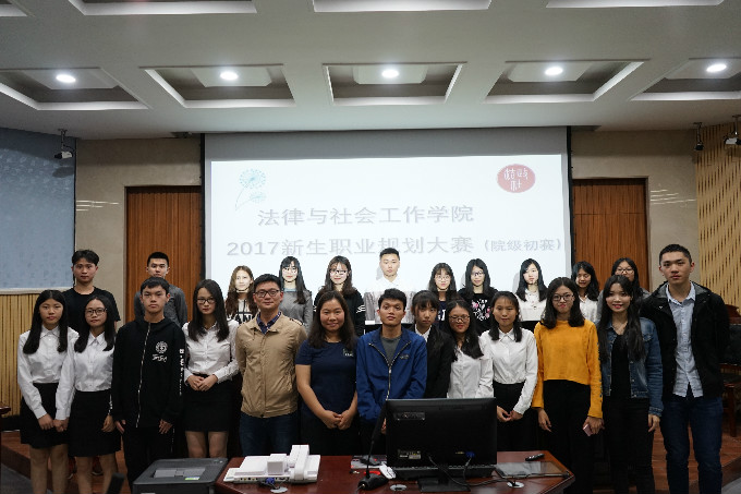 在莞城校区模拟法庭举行了2017级新生职业规划大赛。莅临本次比赛的嘉宾有辅导员钟丽华老师、邱可荣老师、邹欢老师以及团总支常务副书记张喜劲、学生会主席陈慧聪、学生会秘书长朱倩仪,本次比赛的评委有职业协会的讲师李秋坤、张敏君、李国康。