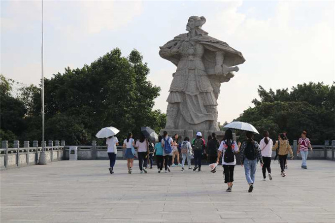 莞城校区正门前公交站集结后准时开展,全班同学而后一齐前往广东省爱国主义教育基地-袁崇焕公园。