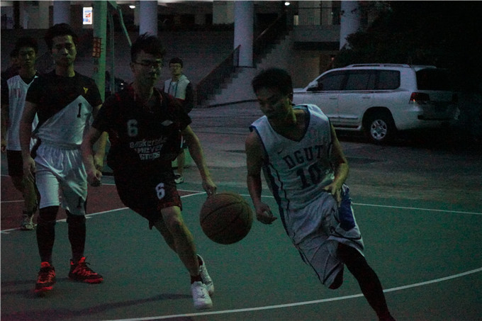 篮球赛半决赛第二场于图书馆前篮球场进行,参加的球队为15级法学和17级行2社2。