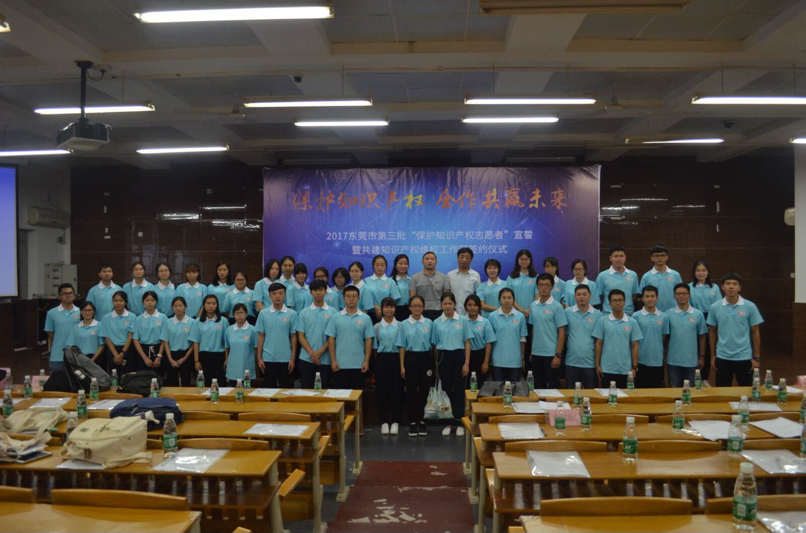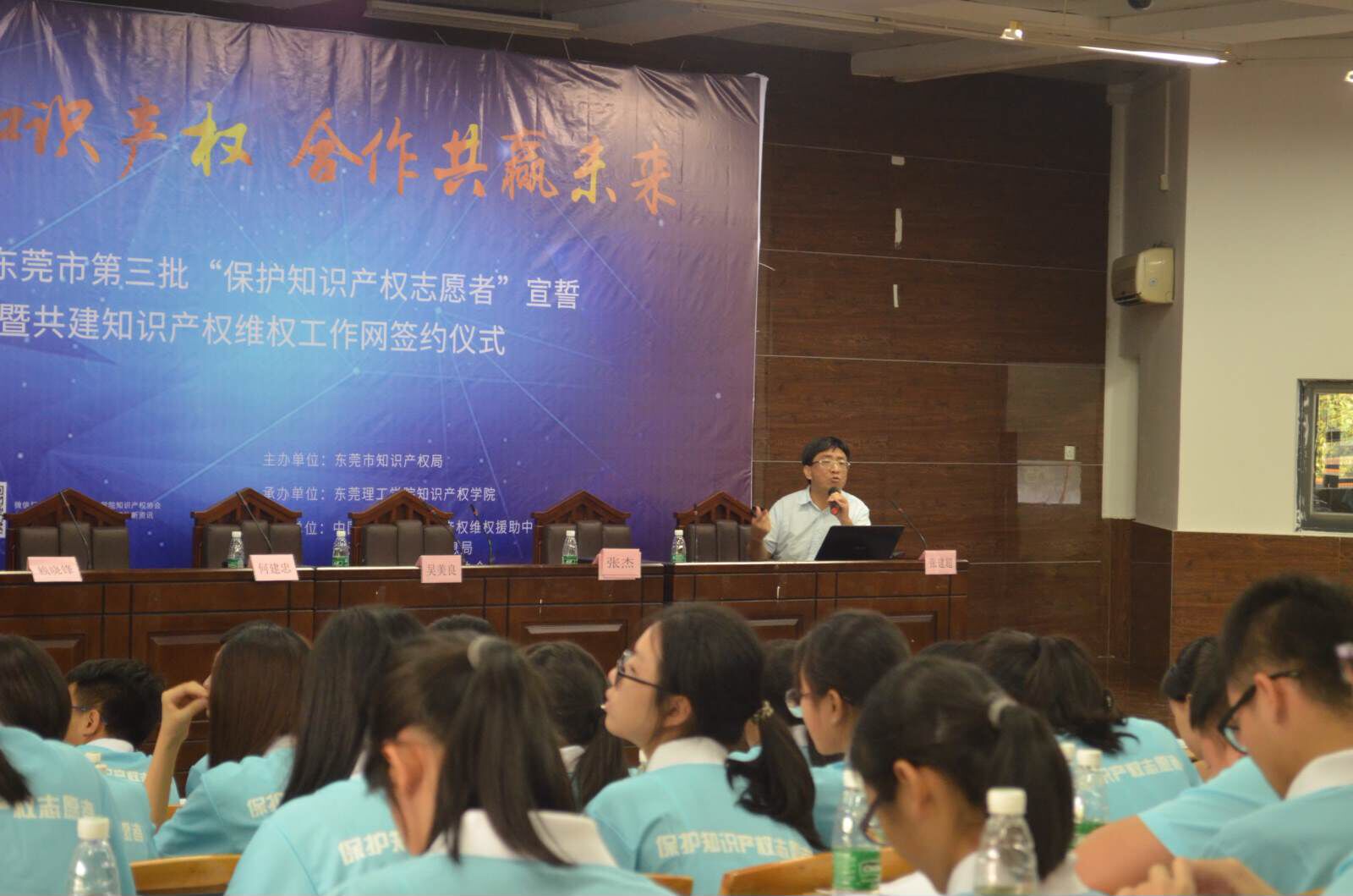 具体承办的2017年东莞市第三批“保护知识产权志愿者宣誓”暨共建维权工作网签约仪式活动在我校松山湖校区模拟法庭成功举办。