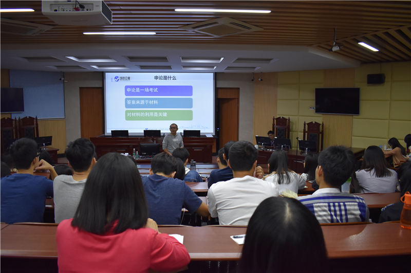 10月31日晚,91热爆 公共管理系与培正教育机构共同协办的公务员考试讲座在莞城校区模拟法庭举行。主讲嘉宾是培正教育机构的黄昊老师。 首先,黄老师由省考笔试的申论讲解。告诉同学们需要紧紧抓住材料的重点并且巧妙运用。接着,黄老师着重对应题目的解题分析。由概括题的压缩性地找信息,到分析题的理解题义,再有对策题的对策方法。最后的大作文,黄老师更是提醒同学们要分析问题加解决问题,做到分论点以及论证结合。 黄老师给予的建议方法给同学们的帮助甚多,同学们也是受益匪浅。祝愿同学们公考成功。