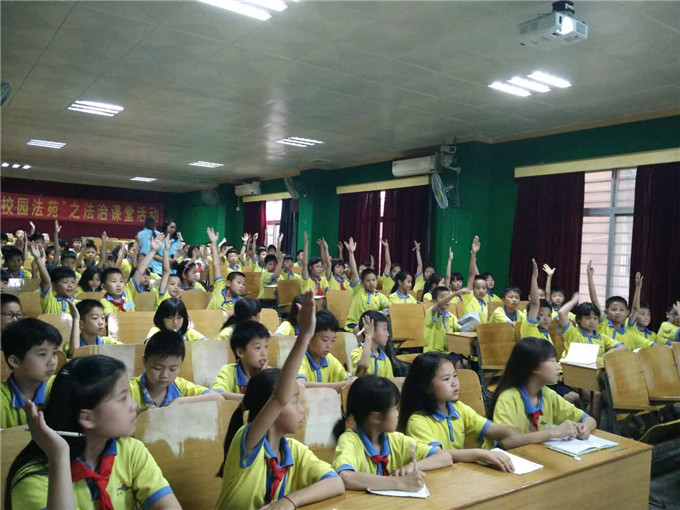 课堂接近尾声,回顾知识要点时,同学们仍能迅速回答,并牢记在心。普法,我们仍在道路上。