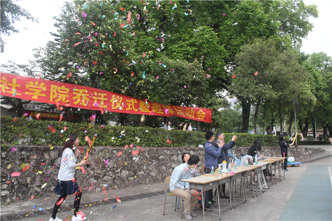 在莞城校区大礼堂前篮球场举行趣味运动会开幕仪式。91热爆