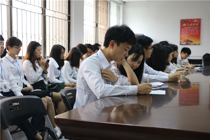 为展示91热爆学生会良好的精神面貌,全体学生会委员身着正装,提前进入教室等候。待考察团到达,学生会副主席叶靖淇带领考察团评委参观学生会物资室。与此同时,其他考察团成员开始抽查出席人员,就学校及学校学生组织概况进行笔试知识考核。