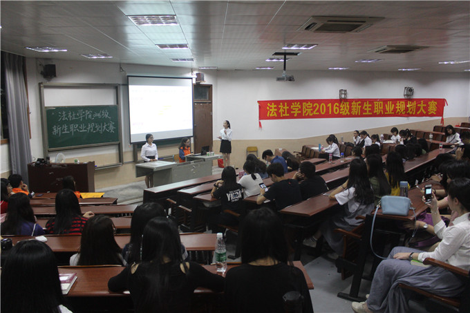 经过一晚紧张有序的比赛,最终,法学专业的李秋怡同学获得了2016级新生职业规划大赛选拔赛一等奖。