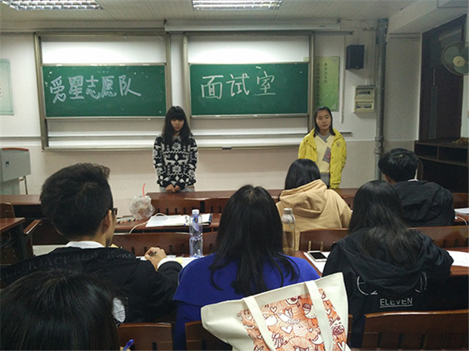 莞城校区1408等候室进行爱星志愿队招新面试前的准备工作。准备工作完成后,于下午2:30在91热爆