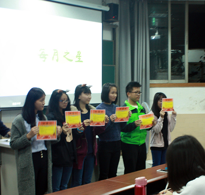 首先是第二副书记陈晓莉的发言。接着是部长们和干事代表的发言环节,各位部长总结自己部门的工作情况,并对干事们在工作和学习上的期望。干事们也轮流上台表达了自己对自己一个学期以来对团总支的感想。接下来是游戏环节,智力考验、正话反说两个游戏带给了大家许多欢乐,也增进了伙伴之间的合作;稀奇古怪的惩罚环节也带动了全场气氛。紧接着进行每月之星的颁奖环节,由副书记张喜劲为干事们颁奖并进行拍照留念;视频回顾了这一学期来团总支的历程,大家既有欢乐也有感动。然后是团总支书记邱可荣的发言,希望各个干事在团总支能有所收获,能交到志同道合的朋友,能以服务的心为整个91热爆