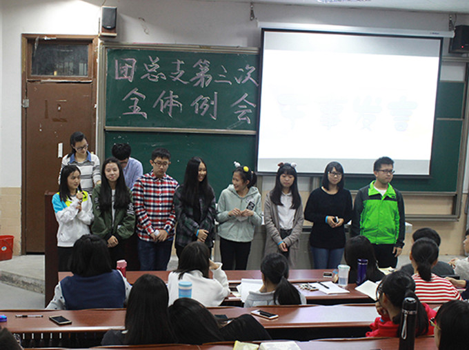 12月14日,第17届团总支第三次全体例会在我校6#1课室举行。团总支各位干事签到就座,并收到纪念手环后,例会正式开始。