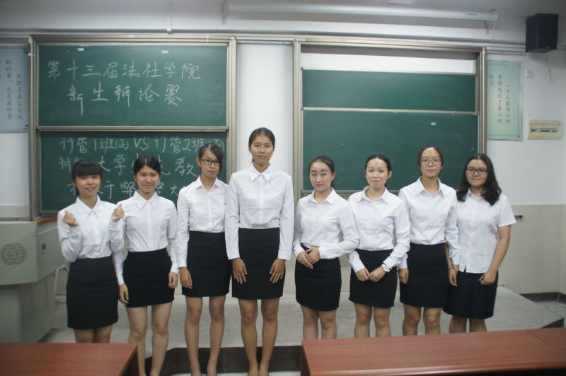 辩论队谭乐、黄鑫杰、张婷婷、陈卓翰、李敏慧、雷蕾、池翔、郭为作为评委参与本次比赛。