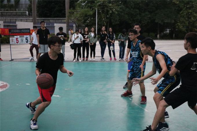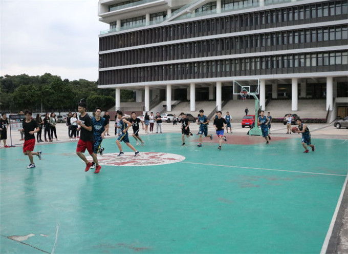 第三场二轮篮球赛在图书馆旁篮球场顺利举行,比赛双方分别是15法学四班和15行政管理二班、行政管理四班组成的队伍。