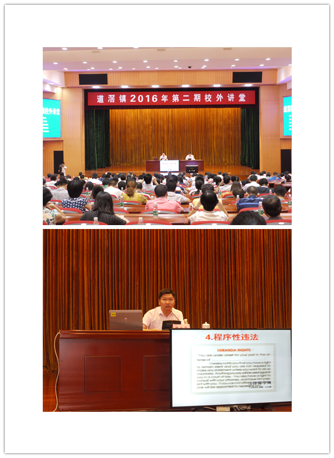 推出的以服务地方和本校师生的“法政大讲堂”项目中的第二期。主讲人柳士双博士结合自己在麻涌镇分管依法行政工作的时间经验和案例,将行政法律专业知识很好地结合,主要是从行政违法的突出表现、基层执法的背后逻辑、依法行政的基本要求以及法治中国的路径选择等方面详细解读了当前依法行政的相关问题及政策,为道滘镇的法治建设提供了较强的指导和借鉴作用。整场讲座深入浅出,生动活泼,座富有感染力。